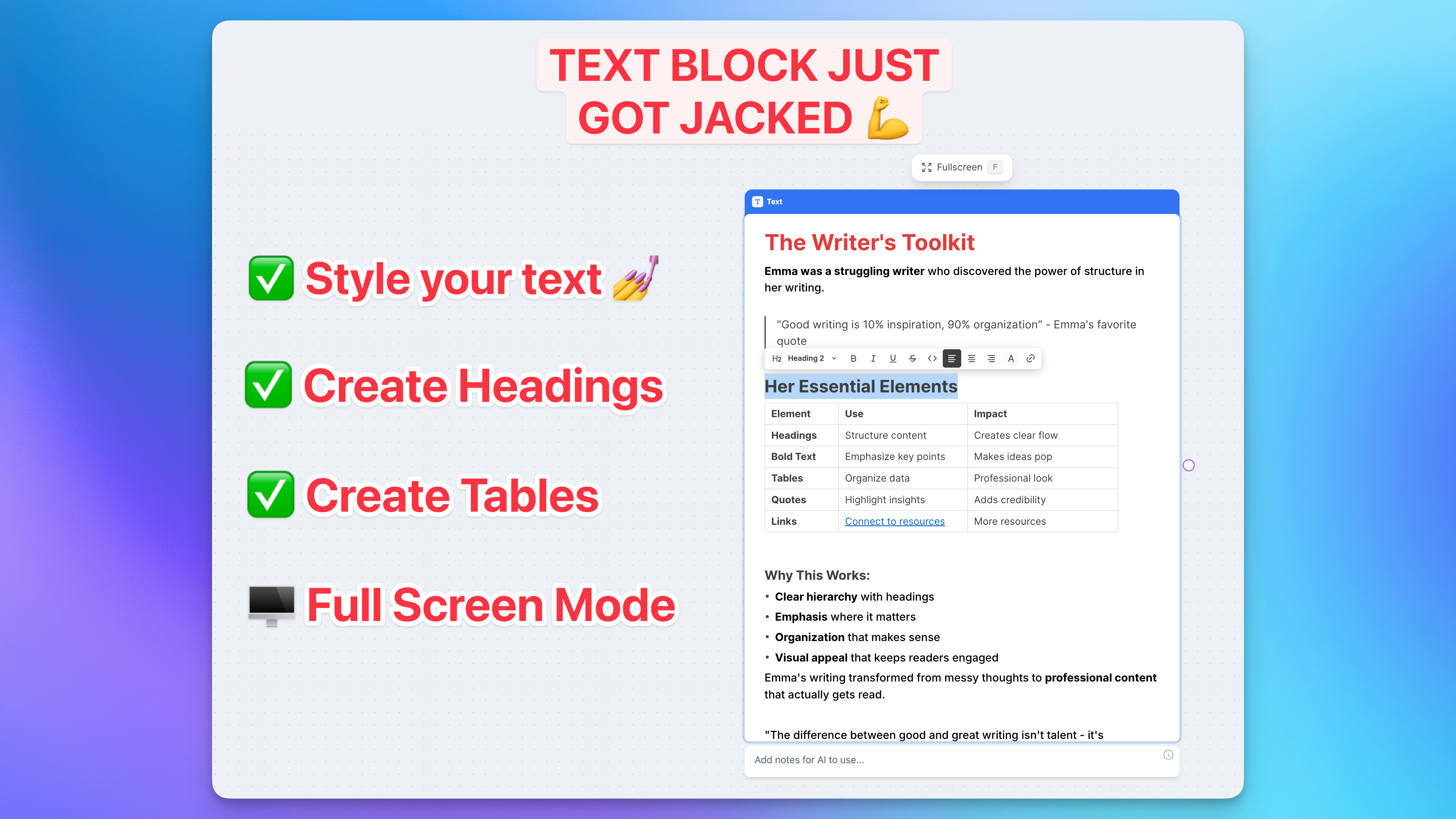 Our dev team said "let's make Text Block better than Google Docs!"