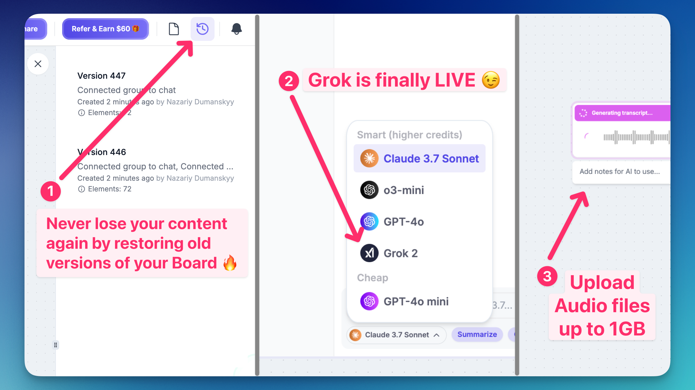 Grok 2 is LIVE + Never lose board content again + Upload MASSIVE audio files (up to 1GB)! 🀯